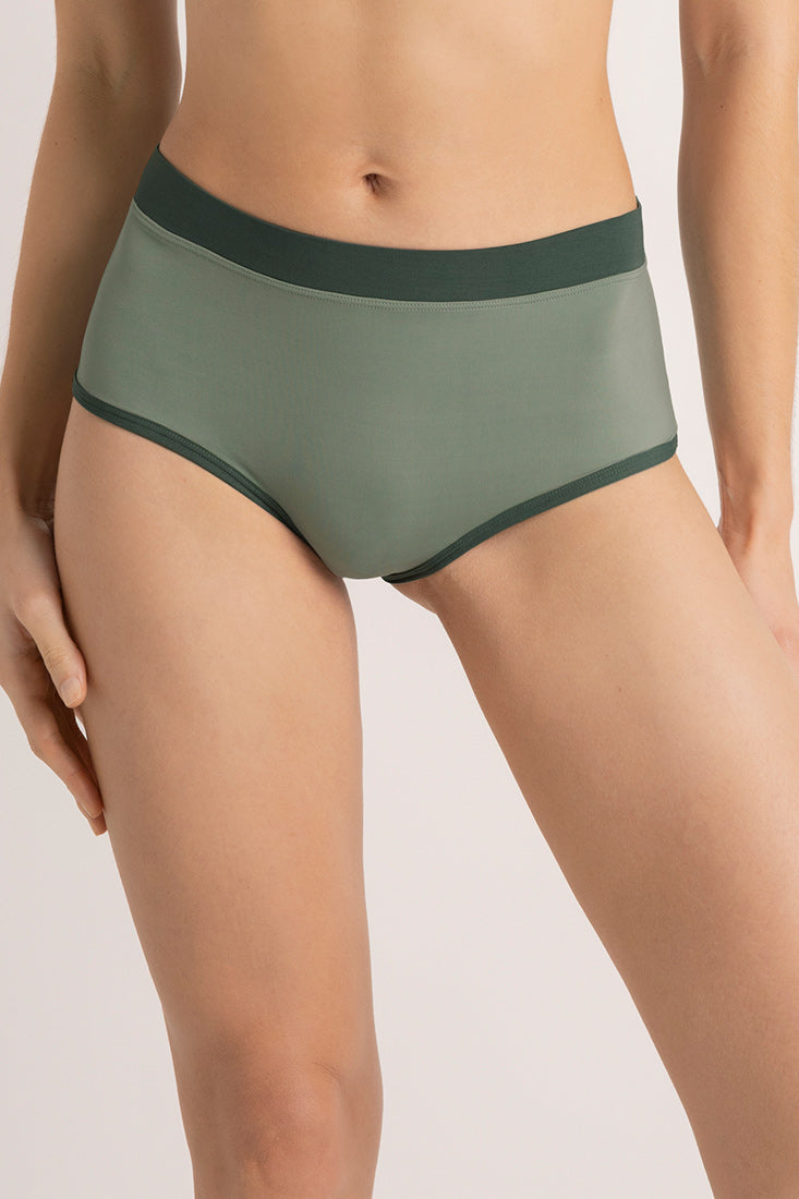 Panty cachetero con sesgos en contraste elaborado en microfibra . Color verde, Ref. 1231042