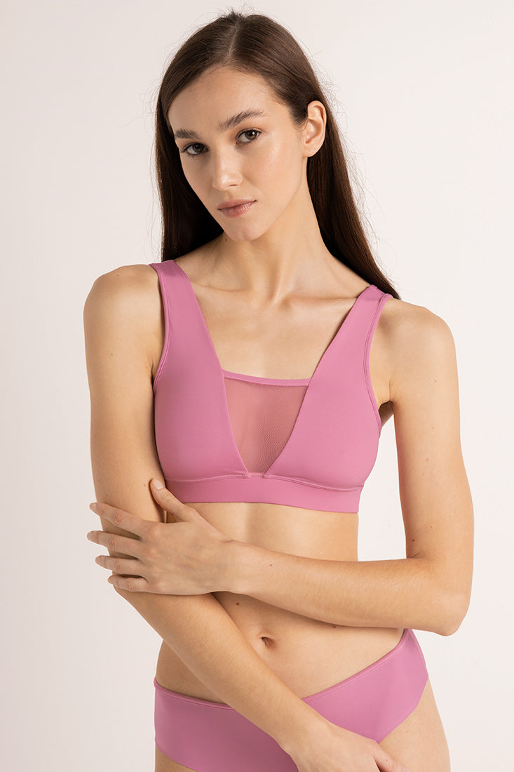 Top deportivo con tul en escote paquete x 2 unidades, elaborado en microfibra. Color rosado/off white, Ref. 1499042